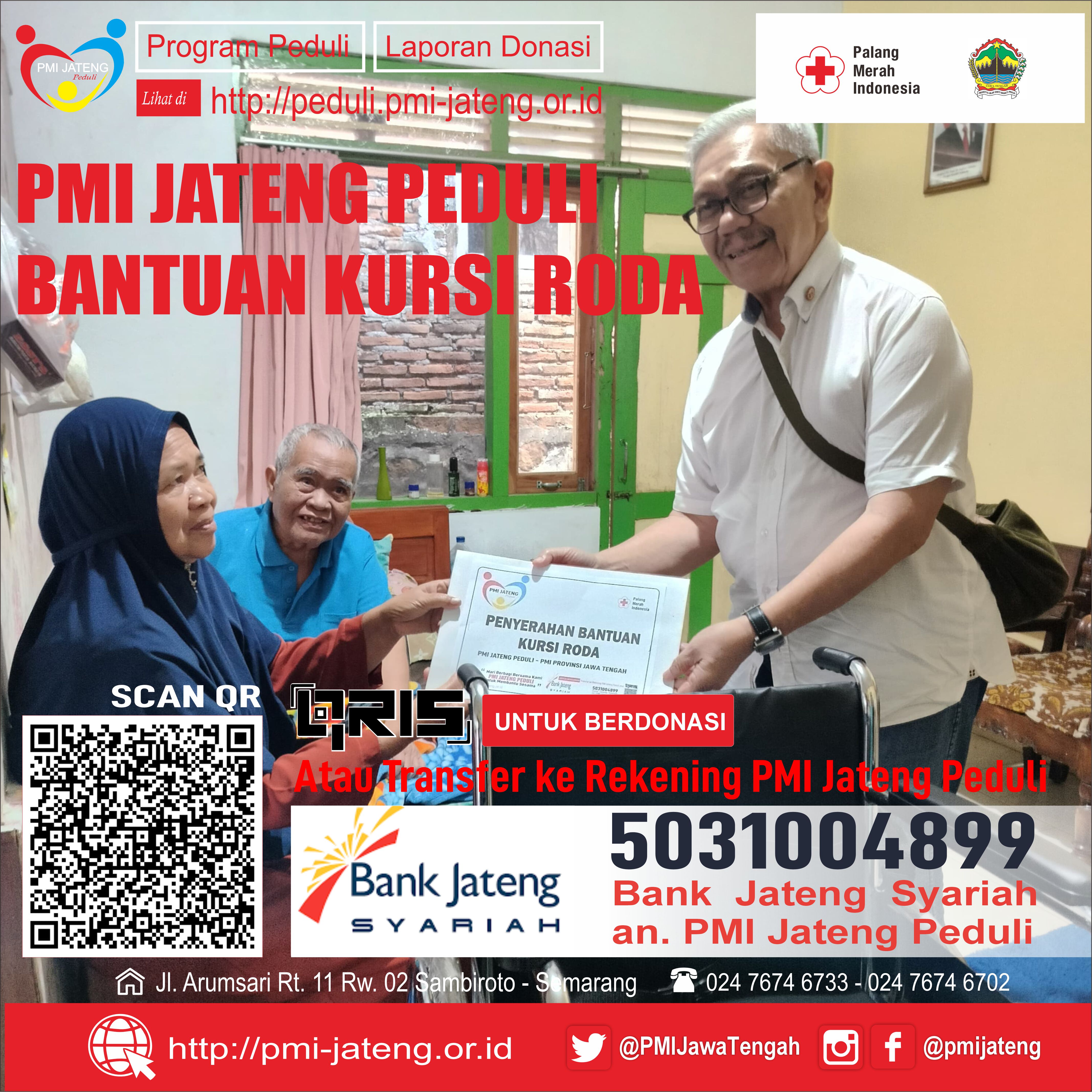 PMI Jateng Peduli Salurkan Donasi bantuan Kursi Roda kepada Penderita Stroke senilai Rp. 1.600.000,-