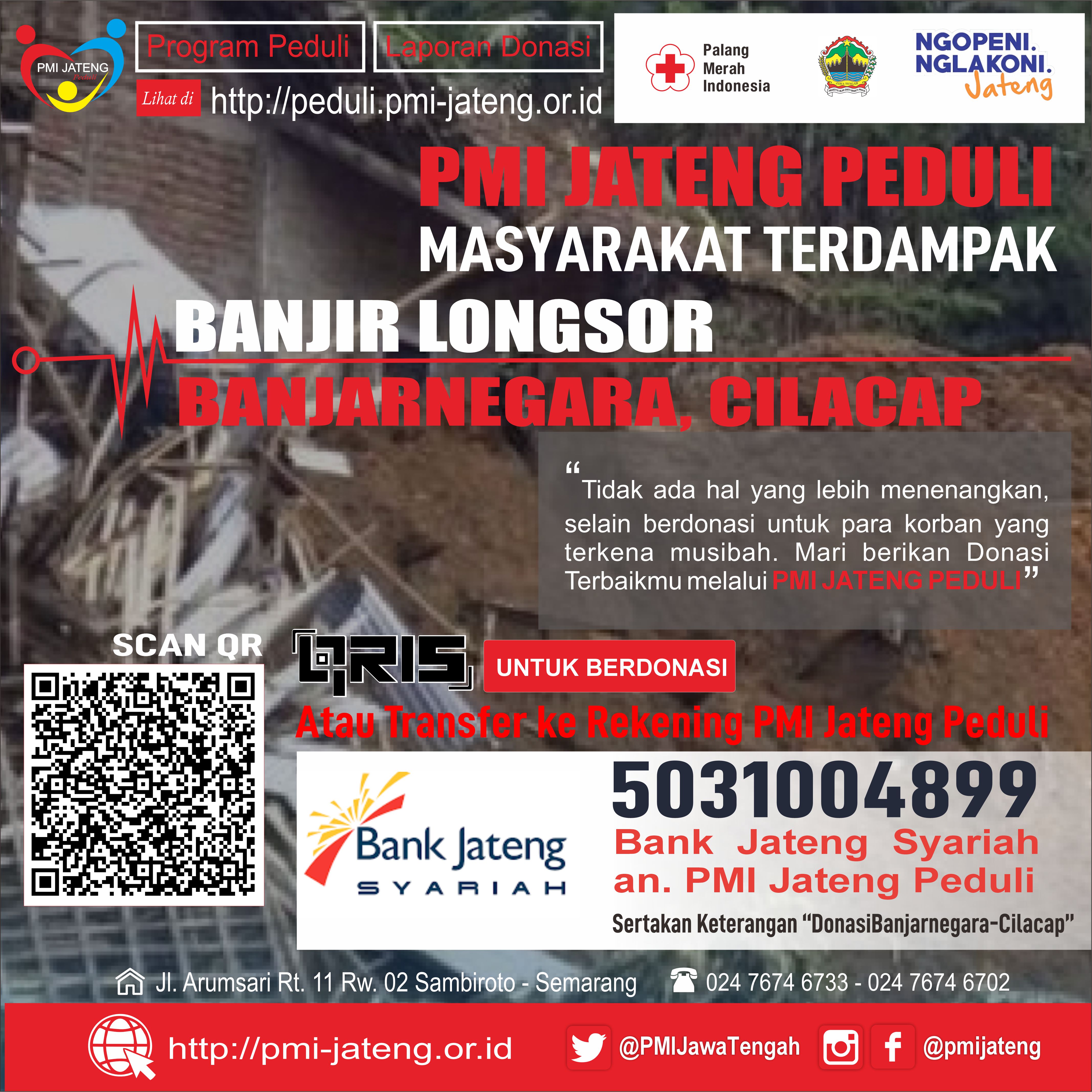 PMI Jateng Peduli salurkan Donasi untuk korban Longsor Banjar Negara sejumlah Rp. 25.000.000,-