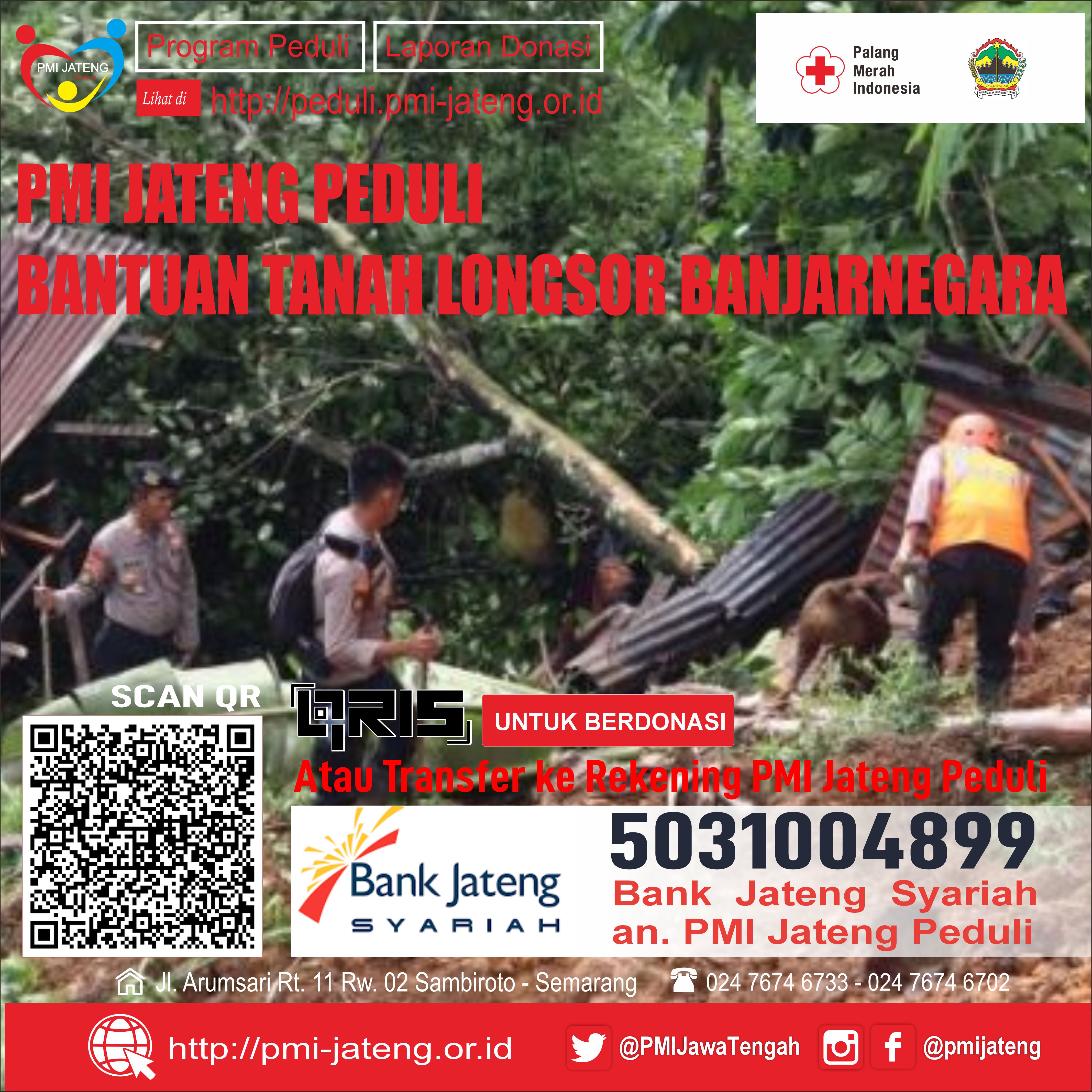 PMI Jateng Peduli salurkan Donasi untuk korban Longsor Banjar Negara sejumlah Rp. 25.000.000,-